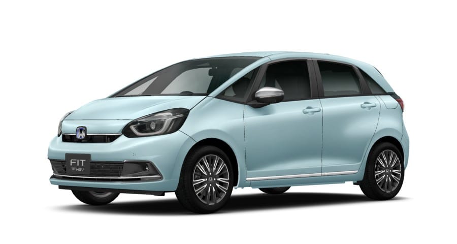 フィット e:HEV LUXE ボディーカラーはシーベッドブルー・パール(有料色:33,000円高含む) インテリアカラーはブラック