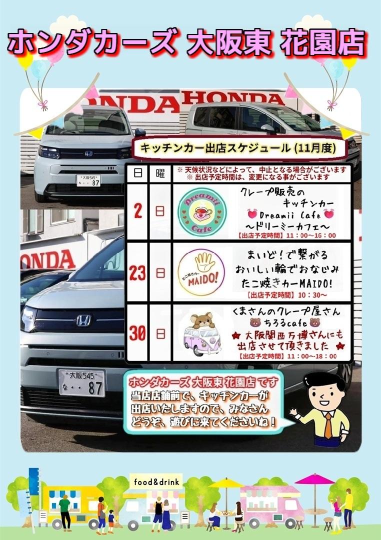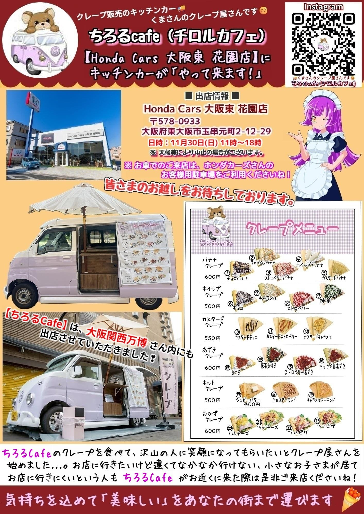 お知らせ 当店店舗前で、キッチンカーが出店いたします! 遊びに来てくださいね! 2025.10.20 11月2日(日)11時00分~16時00分 ※出店予定時刻は予告なく変更になる場合がございます。 11月23日(日)10時30分~ ※出店予定時刻は予告なく変更になる場合がございます。 11月30日(日)11時00分~18時00分 ※出店予定時刻は予告なく変更になる場合がございます。
